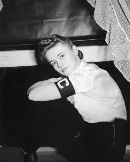 Αυτή εδώ ήταν η αγαπημένη φωτογραφία της Dickey Chapelle, που την απεικόνιζε εν ώρα εργασίας, παρμένη στο Milwaukee από τον λοχία Lew Lowery, o οποίος φωτογράφισε την πρώτη αμερικάνικη σημαία που σηκώθηκε στο Mount Suribachi στην Iwo Jima (Η φωτογραφία παραχωρείται από το Wisconsin Historical Society Historic Images Collection).