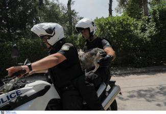 Μάλιστα ο φωτογραφικός φακός "εντόπισε" Αστυνομικούς της Ομάδας ΔΙ.ΑΣ. τη στιγμή που έσωζαν σκύλο, μεταφέροντας τον με τη μηχανή τους σε ασφαλές σημείο.