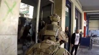 Κατά την έφοδό τους οι πάνοπλοι άνδρες ελέγχουν το διαμέρισμα και συλλαμβάνουν τους διακινητές, ενώ στο ίδιο βίντεο φαίνονται σε φωτογραφίες οι άθλιες συνθήκες κάτω από τις οποίες ζούσαν οι μετανάστες - θύματα του κυκλώματος.