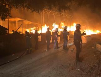 Είναι η στιγμή που μαζί με τους συναδέλφους της Πυροσβεστικής Υπηρεσίας επιχειρούμε την κατάσβεση της πυρκαγιάς στη βόρεια πύλη του ΚΥΤ, δεχόμενοι καταιγισμό πετρών από αλλοδαπούς, οι οποίοι προφανώς αντιδρούν και επιθυμούν την επέκτασή της,παρολο που απειλούνται ανθρώπινες ζωές.