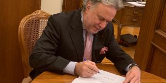 Την στιγμή της υπογραφής του στον κυρωτικό νόμο της ιστορικής Συμφωνίας των Πρεσπών ανήρτησε στον λογαριασμό του στο Twitter ο αναπληρωτής υπουργός Εξωτερικών, Γιώργος Κατρούγκαλος.