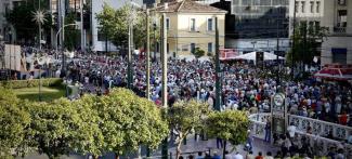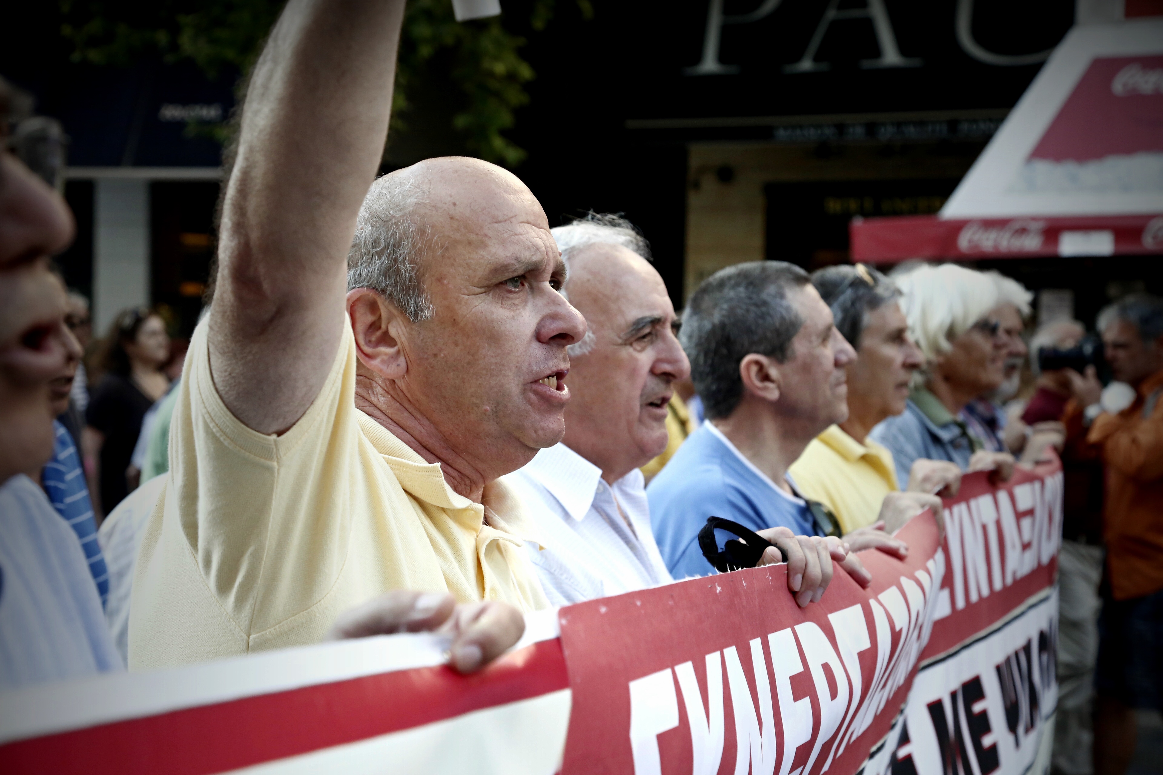 Οι διαδηλωτές συγκεντρώθηκαν στην Ομόνοια και έφτασαν στα Προπύλαια, όπου ενώθηκαν με την πορεία των συνταξιούχων.