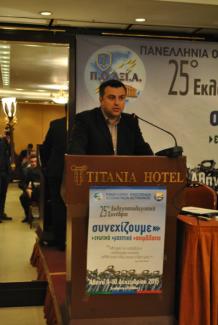 Χαιρετίζω και εγώ με τη σειρά μου τις εργασίες του 25ου Συνεδρίου της Ομοσπονδίας μας. Σε μια δύσκολη χρονική περίοδο για όλο τον Ελληνικό λαό, που βρίσκεται προ των πυλών μιας νέας μνημονιακής συμφωνίας με τους εταίρους, μιας συμφωνίας που αδιαμφισβήτητα θα αποφέρει ακόμα μεγαλύτερη εξαθλίωση, φτωχοποίηση και εξουθένωση σε εμάς και τις οικογένειές μας, βρισκόμαστε για άλλη μια χρονιά εδώ, λαβωμένοι από την εφαρμογή των δυο πρώτων μνημονίων, προκειμένου να καθορίσουμε σε νέα βάση τις μελλοντικές μας δράσεις, εκείνες που δύναται να αποτρέψουν την καθολική συντριβή μας, δίνοντας κι εμείς ως εργασιακός κλάδος τη δική μας μάχη, προκειμένου να διαφυλάξουμε όση αξιοπρέπεια μας έχει απομείνει.