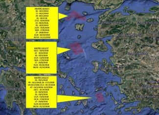 Η Υδρογραφική Υπηρεσία του τουρκικού ναυτικού εξέδωσε τις NAVTEX 1410-1411-1412/17 με τις οποίες δεσμεύει 3 περιοχές στο Αιγαίο για σχεδόν όλο το 2018!