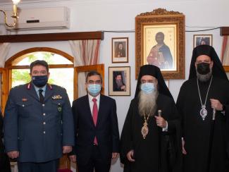 Τιμή μας συνιστά σήμερα και η παρουσία του Σεβασμιώτατου Μητροπολίτου Νέας Ιωνίας, Φιλαδελφείας, Ηρακλείου και Χαλκηδόνος κ. Γαβριήλ, στην σεβαστή μητρόπολη του οποίου ανήκει το νέο μέλος της Αστυνομικής Οικογένειας ο Πανοσιολογιώτατος Πατέρας Αλέξιος. Οι ευλογίες σας και οι προσευχές σας, Σεβασμιώτατε, ας καθοδηγούν και ας στέγουν κάθε στιγμή τον Πατέρα Αλέξιο κατά την επιτέλεση του ποιμαντορικού του έργου προς πνευματικό όφελος του συνόλου του προσωπικού του Σώματος.