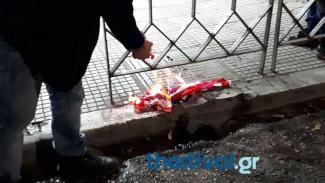 Πριν λίγο η πορεία έφτασε μπροστά από το προξενείο όπου και διαδηλωτές έκαψαν την αμερικανική σημαία.