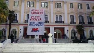 Αποχώρησαν από το Υπουργείο Μακεδονίας - Θράκης τα μέλη του ΠΑΜΕ, που πραγματοποίησαν νωρίτερα συμβολική κινητοποίηση στο υπουργείο. Σκοπός τους ήταν να κάνουν γνωστή την πανελλαδική απεργία της προσεχούς Πέμπτης και να απευθύνουν κάλεσμα στον κόσμο να συμμετάσχει στη συγκέντρωση, την ίδια μέρα, στο Άγαλμα του Βενιζέλου (10.30).