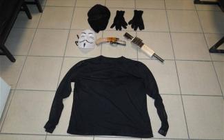 Ο δράστης φορώντας αποκριάτικη μάσκα και κουκούλα, και κρατώντας κυνηγετική καραμπίνα, με κομμένη κάννη και κοντάκι, πλησίασε τον ταμία, φωνάζοντας ληστεία.