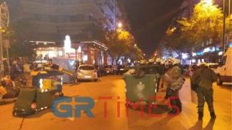 Μερίδα των διαδηλωτών που συμμετείχε στην πορεία με κουκούλες, επιτέθηκε με πέτρες στις δυνάμεις των ΜΑΤ στο ΥΜΑΘ. Οι αστυνομικές δυνάμεις απάντησαν με χειροβομβίδες κρότου-λάμψης. Οι διαδηλωτές κινήθηκαν προς την Αγίου Δημητρίου, βάζοντας κάδους απορριμμάτων στον δρόμο.