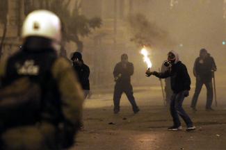 Λίγο πριν ολοκληρωθεί και η δεύτερη πορεία για την 45η επέτειο από την εξέγερση των φοιτητών στο Πολυτεχνείο, κουκουλοφόροι βρίσκονται ήδη εντός της Πολυτεχνικής Σχολής του ΑΠΘ και ετοιμάζονται να στήσουν οδοφράγματα επί της οδού Εγνατία.