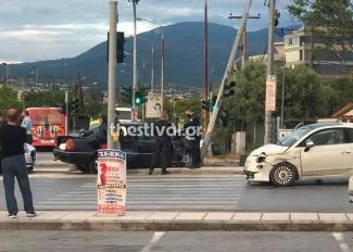 Συγκεκριμένα, δύο αυτοκίνητα συγκρούστηκαν στον κόμβο του ΙΚΕΑ. Το ένα από τα δύο ΙΧ προσέκρουσε σε φανάρι.