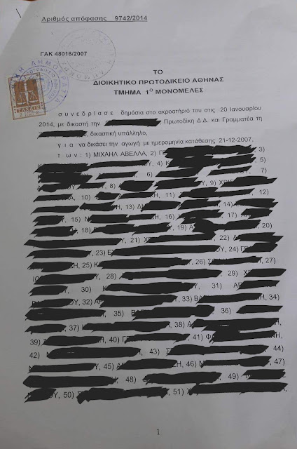 3. Η παρούσα αφορά για το επίδομα ειδικής απασχόλησης και έχει ΓΑΚ (γενικός αριθμός κατάθεσης) 48016/ 2007 (2007 το έτος) και αριθμό απόφασης 9742/2014 που συνεδρίασε δημόσια την 20.01.2014 στο 1ο Μονομελές Διοικητικό Πρωτοδικείο Αθηνών. Δηλαδή δεν υποστηρίχτηκε καν πρωτόδικα;;