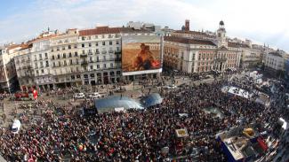 Στη Μαδρίτη, η επέτειος του κινήματος εορτάστηκε επίσης με συγκεντρώσεις στην πλατεία Πουέρτα δελ Σολ, στο κέντρο της πρωτεύουσας, την οποία είχαν καταλάβει οι Αγανακτισμένοι για ένα διάστημα πολλών εβδομάδων.