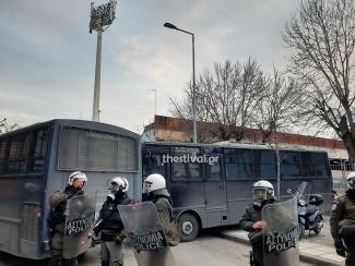 Περιμετρικά του γηπέδου έχουν στήσει φραγμό κλούβες της αστυνομίας καθώς και ΜΑΤ προκειμένου να μην υπάρξει ένταση κατά την άφιξη της αποστολής του ΠΑΟΚ.