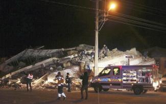 Το κρατικό δίκτυο TRT μετέδωσε εικόνες με δεκάδες μέλη συνεργείων διάσωσης να αναζητούν επιζώντες σε κτίριο στην Ελαγίζ, μέρος του οποίου είχε καταρρεύσει. Τα παράθυρα είχαν σπάσει και τα μπαλκόνια από τουλάχιστον τέσσερις ορόφους είχαν καταρρεύσει.