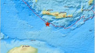 Ισχυρή σεισμική δόνηση σημειώθηκε στις 00:29 μετά τα μεσάνυχτα σε απόσταση 48 χιλιομέτρων Νότια της Γάυδου.