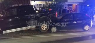 Το ατύχημα έγινε στην οδό Ηγουμένου Γαβριήλ, όταν, σύμφωνα με πληροφορίες του Flashnews.gr, ενα αγροτικό αυτοκίνητο φρέναρε απότομα με αποτέλεσμα ΙΧ που ακολουθούσε, να "καρφωθεί" πίσω στο αγροτικό και τμήμα αυτού να μπει απο κάτω από το προπορευόμενο όχημα.