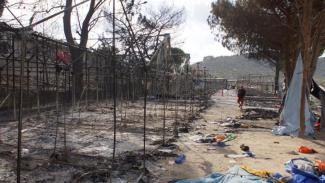 Δύο σκηνές στον εξωτερικό χώρο του καταυλισμού της Μόριας στη Λέσβο κάηκαν, σήμερα το πρωί, από άγνωστους μέχρι στιγμής λόγους.