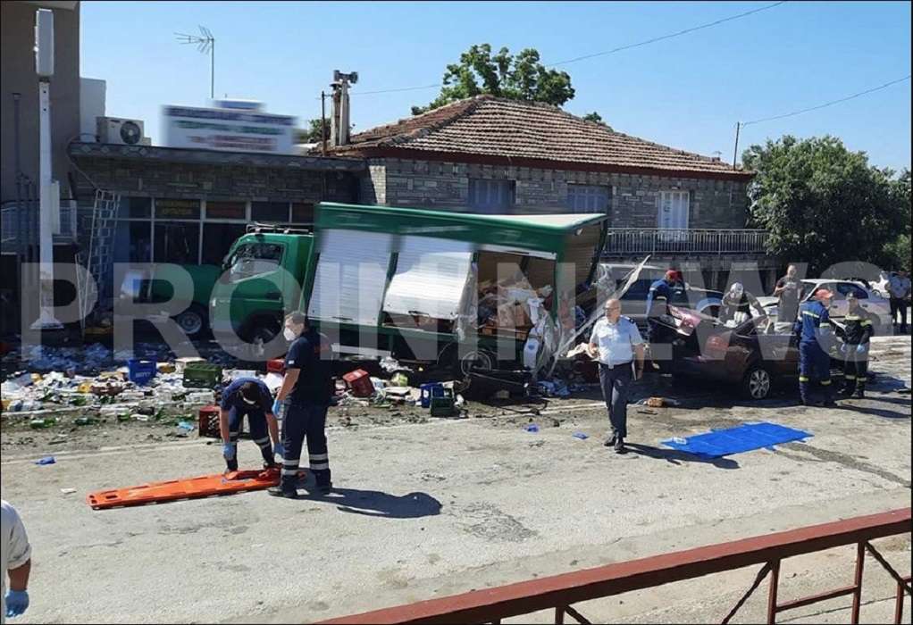 Ειδικότερα, αυτοκίνητο ξέφυγε της πορείας του και προσέκρουσε πάνω σε ένα άλλο που είχε σταματήσει στην άκρη του δρόμου. Τα δύο αυτοκίνητα έπεσαν πάνω σε φορτηγάκι που τροφοδοτούσε κατάστημα.