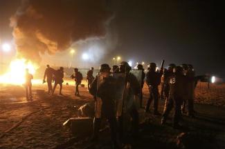 Τη νύχτα προς Δευτέρα είχαν σημειωθεί, όπως και την προηγούμενη, επεισόδια μεταξύ εγκλωβισμένων και των αστυνομικών δυνάμεων. Ομάδα από τον καταυλισμό άρχισε πετροπόλεμο με τους αστυνομικούς, οι οποίοι απάντησαν με δακρυγόνα.
