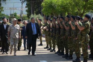 Θέλω να συγχαρώ τους αξιωματικούς, τους υπαξιωματικούς και τους στρατιώτες του Μηχανικού, που σε αυτά τα χρόνια της κρίσης, χωρίς τα μέσα, κατάφεραν όχι μόνο να ανταπεξέλθουν στην κύρια αποστολή τους, δηλαδή να ετοιμάσουν οποιαδήποτε αποστολή, να είναι μπροστά στις ασκήσεις, αλλά και στις επιχειρήσεις της ειρήνης, σε φυσικές καταστροφές, ήταν πρώτοι. Όταν ιδρύσαμε τη ΜΟΜΚΑ δεν πίστευε κανείς ότι με τα μέσα τα οποία είχαν απομείνει από τη θρυλική ΜΟΜΑ θα μπορούσαμε να προχωρήσουμε σε δημόσια έργα. Κι όμως, σε όλα τα νησιά του Αιγαίου, στην παραμεθόριο, στο Άγιον Όρος, προχωρήσατε σε έργα στα οποία δε πίστευε κανείς ότι θα ανταποκριθείτε.