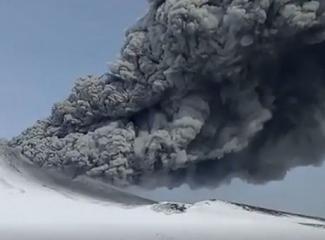 Στα πλάνα που εξασφάλισε το ειδησεογραφικό πρακτορείο Russia Today δείχνουν την τέφρα του ηφαιστείου, ύψους 2.156 μέτρων, να εκτοξεύεται σε ύψος 7.000 μέτρων.