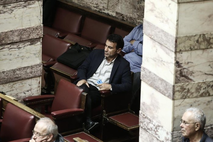 Ο αντιπρόεδρος της κυβέρνησης Γιάννης Δραγασάκης έβγαλε κάποια στιγμή το μαντήλι του να σκουπίσει τον ιδρώτα.