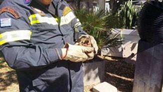 «Ένας απεγκλωβισμός μικρού γατιού στο κέντρο του Ηρακλείου από την 3η ΕΜΑΚ Ηρακλείου. Σήμερα το απόγευμα για μια ακόμα φορά η Πυροσβεστική Υπηρεσία ανταποκρίθηκε στο κάλεσμά μας για τον απεγκλωβισμό και περισυλλογή ενός μικρού γάτου 1,5-2 μηνών που είχε βρεθεί πάνω στη σιδερένια κατασκευή – τέντα, πάνω από καφετέρια, στο Πάρκο Θεοτοκόπουλου, στο κέντρο του Ηρακλείου. Πενταμελής ομάδα της 3ης ΕΜΑΚ, με τον αξιωματικό υπηρεσίας της Πυροσβεστικής έφτασε γρήγορα και με προσοχή απεγκλώβισαν και κατέβασαν το μικρό γατάκι, που άγνωστο πως βρισκόταν πάνω στη σιδηροκατασκευή. Μετά το κατέβασμα από τα ψηλά στα χαμηλά το μικρούλι μας παραδόθηκε και μπήκε σε φιλοξενία μέχρις υιοθεσίας του. Εμείς για μία ακόμη φορά ευχαριστούμε τους πέντε αξιωματικούς της 3ης ΕΜΑΚ που προσέτρεξαν προς βοήθεια και εκτέλεσαν επιτυχώς την … εναέρια περισυλλογή. Πάντα φιλοζωικά άξιο το Πυροσβεστικό Σώμα».
