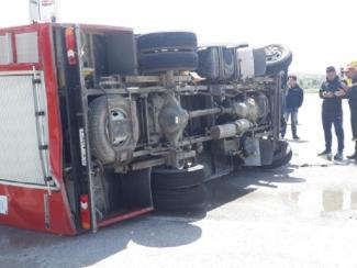 Από το τροχαίο, το ένα ΙΧ υπέστη σοβαρές υλικές ζημιές ενώ το πυροσβεστικό όχημα γύρισε στο πλάι.