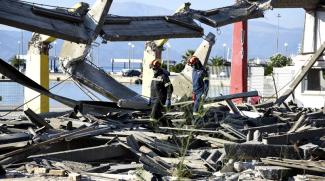 Πυροσβέστες βγάζουν από τα συντρίμμια έναν τραυματία