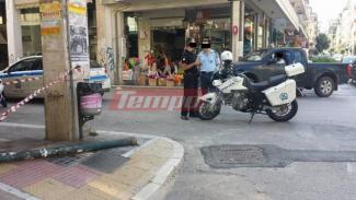 Φωτεινός σηματοδότης "κόπηκε" από τη βάση του, λίγα λεπτά αφού στο σημείο Αστυνομικοί είχαν αποκλείσει το σημείο με κόκκινη κορδέλα. Κυριολεκτικά από καθάρα θέμα τύχης, δεν σημειώθηκε κάποιο ατύχημα με περαστικό καθώς πρόκειται για πολυσύχναστο σημείο.