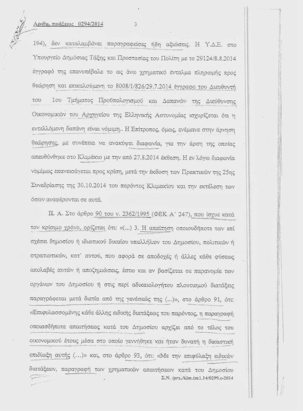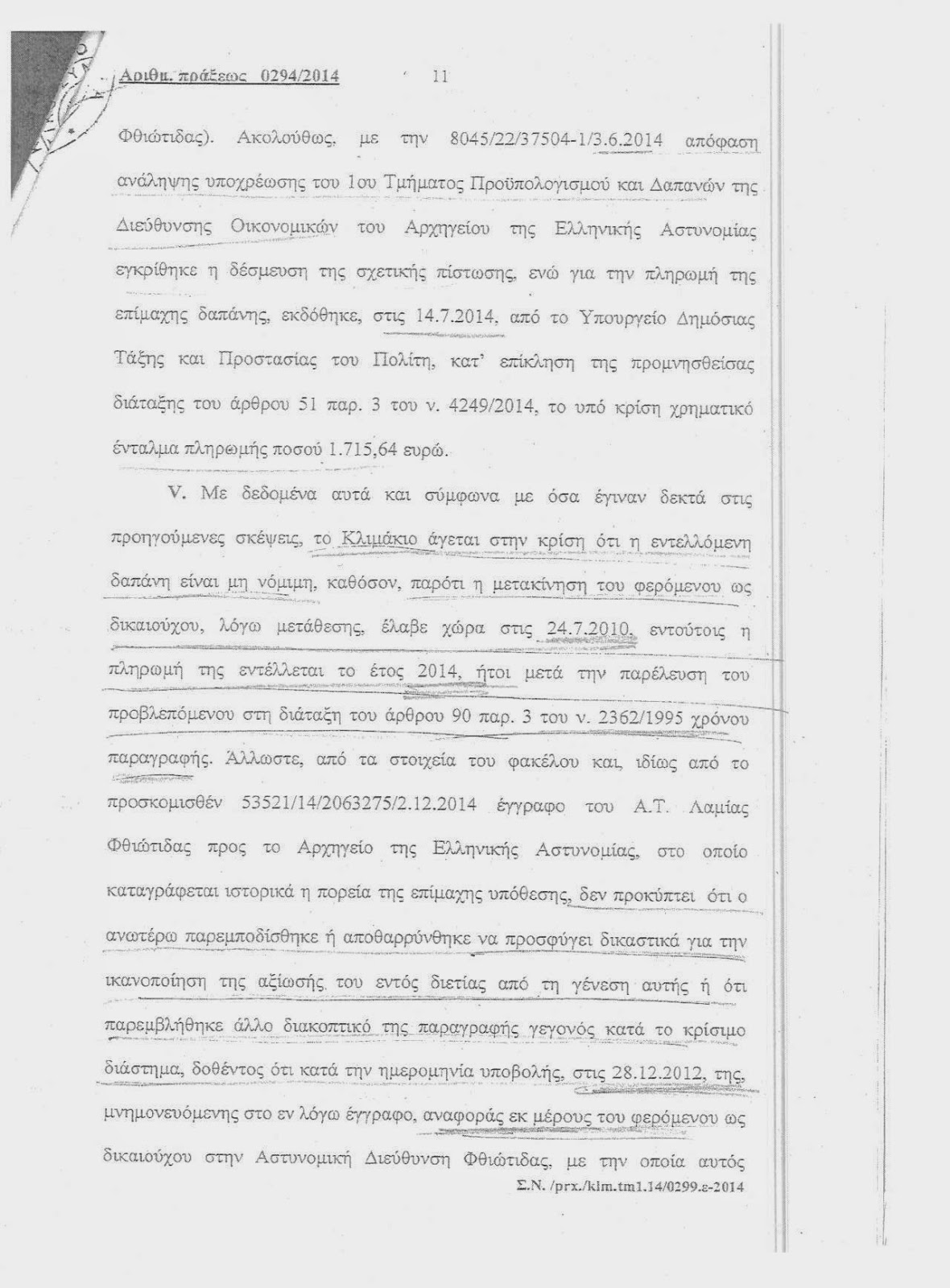 δ) Υπ’ αριθμ. 0294/Συν.ση 30η/22-12-2014 Πράξη του Κλιμακίου Προληπτικού Ελέγχου Δαπανών του Ι Τμήματος του Ελεγκτικού Συνεδρίου