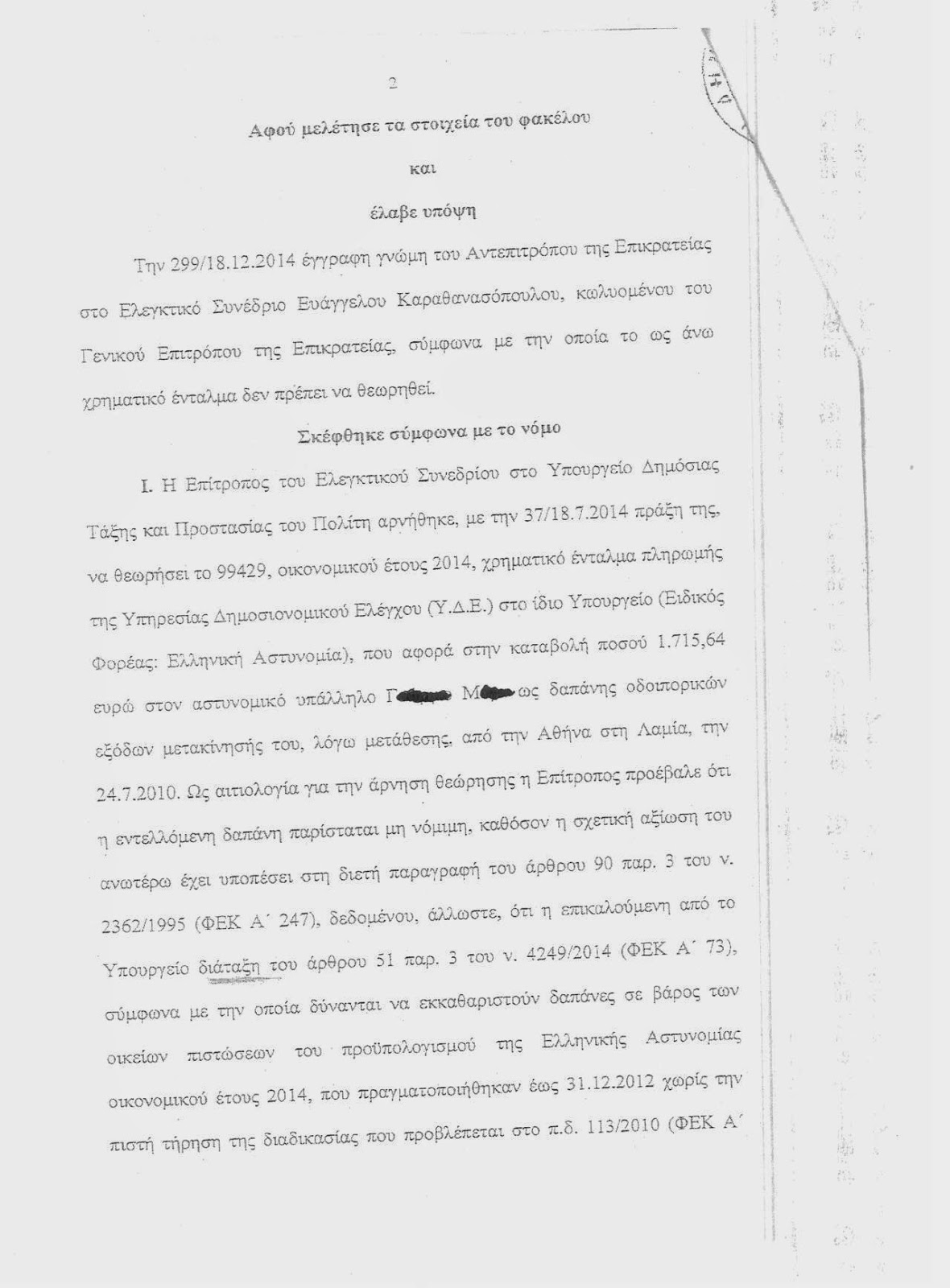 γ) Υπ’ αριθμ. 14734/27-02-2015 έγγραφο τουΕλεγκτικού Συνεδρίου/Υπηρεσία Επιτρόπου στο Υ.Δ.Τ & Π.τ.Π