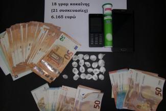 Η ποσότητα κοκαΐνης, συνολικού βάρους 18 γραμμαρίων, μαζί με τα χρήματα και τα κινητά τηλέφωνα κατασχέθηκαν.