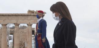 «H μεγαλύτερη δύναμη του Έθνους μας βρίσκεται στην ενότητα και την αλληλεγγύη» τόνισε η Πρόεδρος της Δημοκρατίας Κατερίνα Σακελλαροπούλου μετά την ολοκλήρωση της στρατιωτικής παρέλασης στο Σύνταγμα.