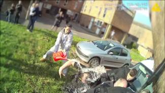 Ένας κλέφτης μηχανής έλουσε με βενζίνη οκτώ αστυνομικούς προκειμένου να αποφύγει τη σύλληψη.