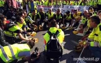 Κλειστή είναι η λεωφόρος Μεσογείων στο ρεύμα προς Αθήνα, από το ύψος του Πενταγώνου και κάτω, λόγω της συγκέντρωσης των μεταλλωρύχων της Χαλκιδικής στο υπουργείο Παραγωγικής Ανασυγκρότησης, όπου φτάνουν τμηματικά.