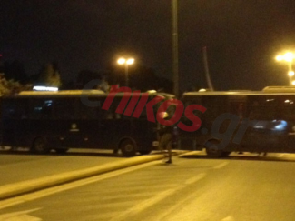 Κλούβες των ΜΑΤ έκλεισαν για λίγη ώρα και τα δυο ρεύματα της Λεωφόρου Μεσογείων, στο ύψος του νοσοκομείου "Σωτηρία", κλείνοντας έτσι το δρόμο και στους διαδηλωτές που έχουν συγκεντρωθεί σε ένδειξη συμπαράστασης στον απεργό πείνας Νίκο Ρωμανό.