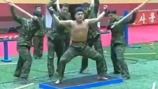 Στη δημοσιότητα έδωσαν τα Βορειοκορεατικά μέσα ένα προπαγανδιστικό βίντεο όπου ο Κιμ Γιονγκ Ουν επιθεωρεί μια μονάδα του στρατεύματός του. Οι φαντάροι του Κιμ κάνουν τα πάντα. Σπάνε πάνω τους πέτρες με βαριοπούλες, ιδρώνουν κάνοντας πολεμικές τέχνες... κάνουν κολοτούμπες για να αποφύγουν τον εχθρό.