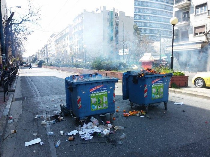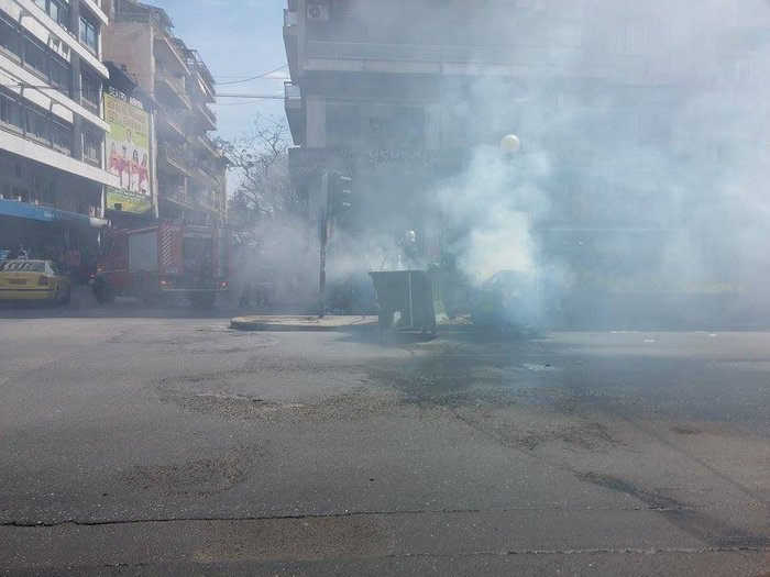 Ενταση επικράτησε στην Πατησίων, μπροστά από το Οικονομικό Πανεπιστήμιο (πρώην ΑΣΟΕΕ). Ομάδα κουκουλοφόρων, έβαλε φωτιά σε κάδους σκουπιδιών.