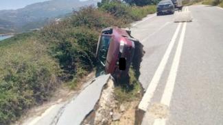 Το δρόμο κάτω από τα πόδια του έχασε στην κυριολεξία, οδηγός στην Κρήτη όταν ένα μεγάλο τμήμα του υποχώρησε, στην περιοχή του Φράγματος Ποταμών, στο Ρέθυμνο.