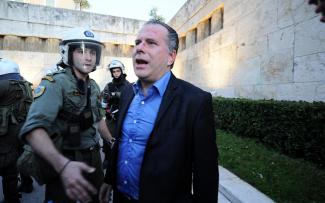 Φαίνεται πως ο κ. Κουμουτσάκος λίγα μέτρα από το Μνημείο του Άγνωστου Στρατιώτη έχει μία έντονη συζήτηση με συγκεντρωμένους στη διαμαρτυρία των Ποντίων.