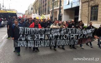 Στην πορεία συμμετέχουν εργάτες της Βιομηχανικής Μεταλλευτικής και των Τσιμέντων Χαλκίδας, αγωνιζόμενοι εργαζόμενοι της Ελεύθερης Αυτοδιαχειριζόμενης ΕΡΤ, οι καθαρίστριες του υπουργείου Οικονομικών, οι σχολικοί φύλακες Θεσσαλονίκης και οι καθηγητές που βρίσκονται σε διαθεσιμότητα.