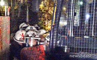 Φοιτητές των ΤΕΙ που πραγματοποιούν από νωρίς το απόγευμα της Δευτέρας συγκέντρωση διαμαρτυρίας πέταξαν πέτρες και κόκκινη μπογιά στις δυνάμεις των ΜΑΤ που βρίσκονται στο σημείο.
