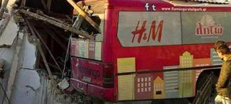 Στη χειρότερη θέση βρέθηκε η 14χρονη μαθήτρια του Γυμνασίου, η οποία παρασύρθηκε από το λεωφορείο, έπεσε στο έρεισμα του δρόμου, πίσω από τα κάγκελα και τραυματίστηκε σοβαρά ενώ στη συνέχεια το όχημα κατέληξε σε κατοικία, την οποία διαπέρασε καταστρέφοντας την σε μήκος 3 μέτρων.