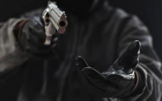 Οι δύο θρασύτατοι ληστές μπαίνουν στο κατάστημα, ενώ μέσα σε αυτό υπάρχει ένας πελάτης. Έξω από το κατάστημα κινούνται πολίτες, αρκετοί από τους οποίους γίνονται αυτόπτες μάρτυρες του περιστατικού. Ντυμένοι στα μαύρα και με καλυμμένα τα χαρακτηριστικά των προσώπων τους, οι δύο ληστές που εισβάλλουν στο κατάστημα κινούνται γρήγορα προς το ιδιοκτήτη ο οποίος βρίσκεται πίσω από τον γκισέ.