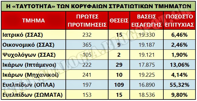 Ωστόσο, για ακόμη μία χρονιά, η εισαγωγή στα κορυφαία Στρατιωτικά τμήματα αποδείχθηκε πολύ δύσκολη υπόθεση, με τις βάσεις εισαγωγής να πιάνουν στην κυριολεξία «ταβάνι».