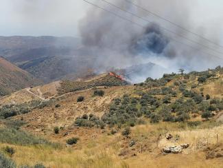Οι άνεμοι που πνέουν στην περιοχή τις τελευταίες ώρες είναι πολύ ισχυροί, ενώ καταβάλλεται κάθε δυνατή προσπάθεια από τους πυροσβέστες να περιορίσουν τη φωτιά.