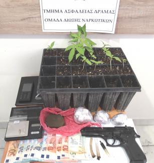 Συνελήφθη χθες (12-5-2021) το μεσημέρι, σε οικισμό του νομού Θεσσαλονίκης, από αστυνομικούς της Ομάδας Δίωξης Ναρκωτικών του Τμήματος Ασφάλειας Δράμας ένας ημεδαπός , σε βάρος του οποίου σχηματίσθηκε δικογραφία για παραβάσεις των νόμων περί ναρκωτικών, περί όπλων και περί προστασίας των αρχαιοτήτων και εν γένει της πολιτιστικής κληρονομιάς.