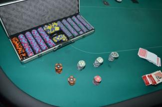 • Έξι τραπέζια με πράσινη τσόχα κατάλληλα διαμορφωμένα για την διενέργεια απαγορευμένων τυχερών παιγνίων.